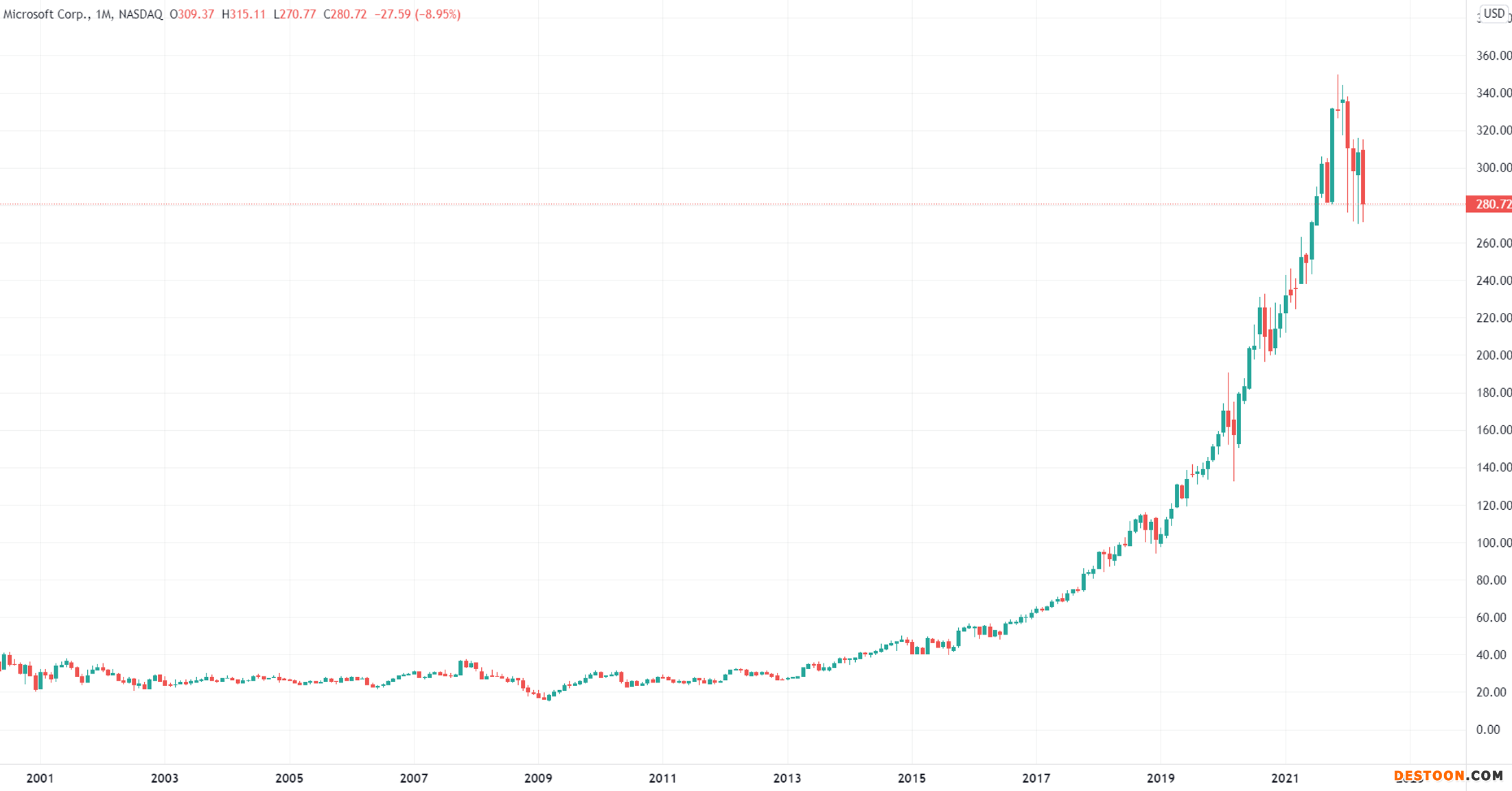 话虽如此,公司的股价表现却没有体现出这一份余裕。年初至今微软公司累计下跌16.36%,与Alphabet同一档,跌幅差不多是苹果的两倍。