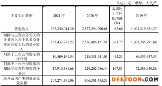 2021年,中自科技实现营业收入9.62亿元,同比减少62.66%;归属于上市公司股东的净利润1040.92万元,同比减少95.23%;归属于上市公司股东的扣除非经常性损益的净利润-1791.04万元,同比减少107.81%;经营活动产生的现金流量净额2.07亿元,上年同期为-3.06亿元。