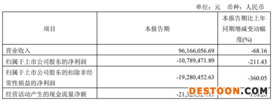 2022年第一季度,中自科技实现营业收入9616.61万元,同比减少68.16%;归属于上市公司股东的净利润-1078.95万元,同比减少211.43%;归属于上市公司股东的扣除非经常性损益的净利润-1928.05万元,同比减少360.05%;经营活动产生的现金流量净额-2132.33万元,同比减少110.28%。