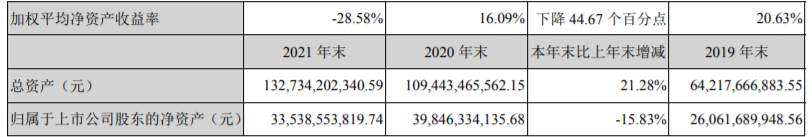 2021年末,新希望总资产为1327.34亿元,比上年末增加21.28%;归属于上市公司股东的净资产为335.39亿元,比上年末减少15.83%;公司负债合计862.55亿元,上年末为580.73亿元;资产负债率64.98%,比上年末增11.92个百分点。