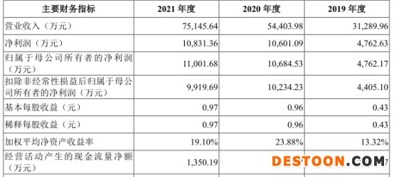 2019年至2021年,禾川科技的营业收入分别为31,289.96万元、54,403.98万元、75,145.64万元;归属于母公司所有者的净利润分别为4,762.17万元、10,684.53万元、11,001.68万元;扣除非经常性损益后归属于母公司所有者的净利润分别为4,405.10万元、10,234.23万元、9,919.69万元;经营活动产生的现金流量净额分别为2,129.87万元、4,701.57万元、1,350.19万元。