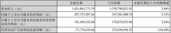 昨日晚间,洽洽食品披露了2022年一季度报告。今年第一季度,公司实现营业收入14.32亿元,同比增长3.86%;实现归属于上市公司股东的净利润2.08亿元,同比增长5.15%;实现归属于上市公司股东的扣除非经常性损益的净利润1.82亿元,同比增长2.64%;经营活动产生的现金流量净额为-7777.03万元,上年同期为2.73亿元。