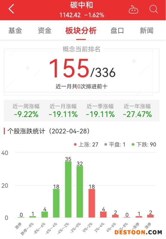 中国经济网北京4月28日讯 今日,碳中和板块整体跌幅1.62%,其中27只股票上涨,1只股票平盘,90只股票下跌。