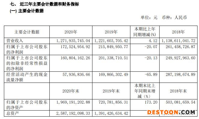 2020年,凯迪股份实现营业收入12.72亿元,同比增长4.12%;归属于上市公司股东的净利润1.73亿元,同比下滑20.07%;归属于上市公司股东的扣除非经常性损益的净利润1.61亿元,同比下滑20.13%;经营活动产生的现金流量净额为5793.68万元,同比下滑65.89%。
