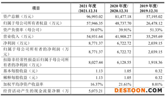 2019年至2021年,德龙激光的营业收入分别为35,295.69万元、41,908.27万元、54,931.64万元;归属于母公司所有者的净利润分别为2,039.15万元、6,722.72万元、8,771.37万元;扣除非经常性损益后归属于母公司所有者的净利润分别为1,918.36万元、6,128.55万元、8,027.44万元;经营活动产生的现金流量净额分别为3,568.66万元、2,244.60万元、5,073.21万元。