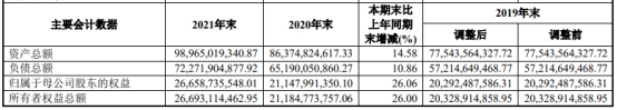 截至2021年末,东兴证券资产总额989.65亿元,同比增长14.58%;负债总额722.72亿元,同比增长10.86%;资产负债率为66.14%,较上年末减少3.79个百分点。