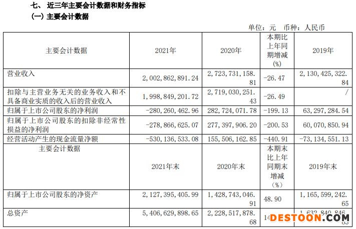 4月28日,新五丰发布2021年年度报告。2021年,新五丰实现营业收入20.03亿元,同比下滑26.47%;归属于上市公司股东的净利润-2.80亿元,同比下滑199.13%;归属于上市公司股东的扣除非经常性损益的净利润-2.79亿元,同比下滑200.53%;经营活动产生的现金流量净额为-5.30亿元,同比下滑440.91%。