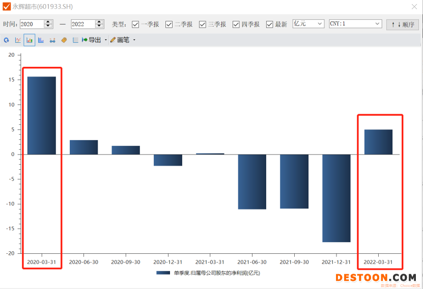 永辉超市昨晚发布了2021年报和2022年一季报。一季度归母净利润5.02亿元,同比增长2053.54%。不过,2021年归母净利润亏损39.44亿元。