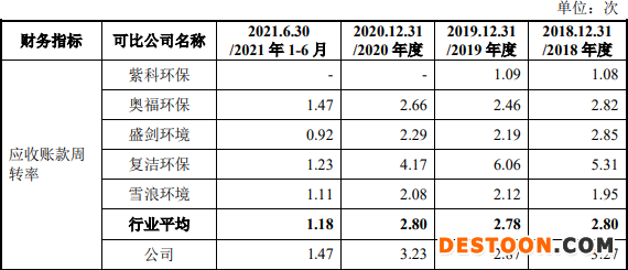 2018年至2021年1-6月,楚环科技应收账款周转率分别为3.27次、2.87次、3.23次、1.47次,同行业可比上市公司均值分别为2.80次、2.78次、2.80次、1.18次。