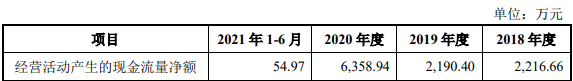 2018年至2021年1-6月,楚环科技净现比分别为1.24、0.68、0.83、0.02。