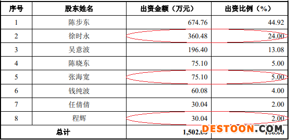 招股书显示,2014年6月,徐时永将其持有楚天有限5%的75.1万元出资额转让给张海宽;2014年12月,张海宽将其持有楚天有限5%的75.10万元出资额转让给陈步东,张海宽退出楚天有限股东名单。