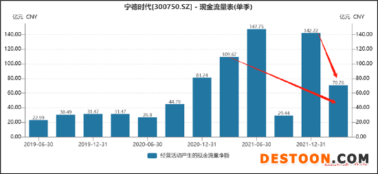 一季报显示,宁德时代经营活动产生的现金流量净额同比下降35.48%,原因是上游材料的供应紧张及价格的快速上涨,公司用于增强供应链保障的资金相应增加。