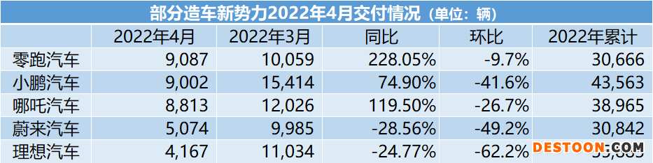 紧随其后的小鹏汽车完成了9002辆的交付成绩,却也出现了41.6%的环比下降。“受近期疫情影响,汽车行业面临前所未有的困境,我们仍能逆势实现单月交付破九千台,是体系能力抗压稳定输出的集中体现。”小鹏汽车表示。