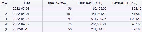 财联社5月2日讯(编辑 赵亮),上周A股市场解禁压力较之前有所减小,同时由于政策等利好因素,市场出现反弹。