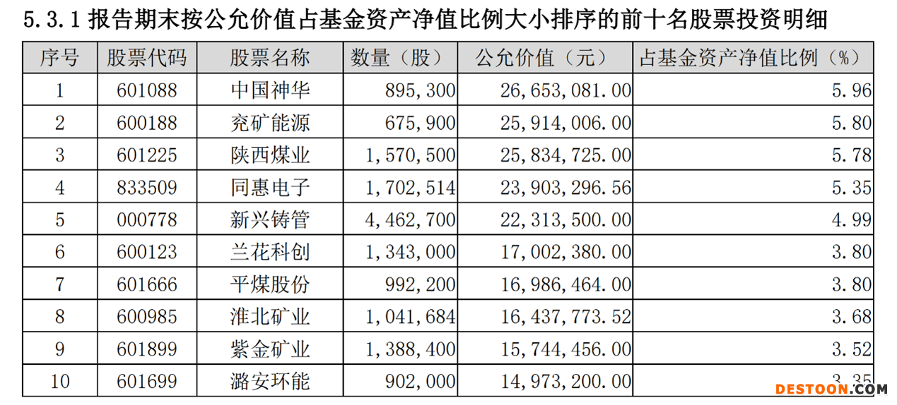 进一步而言,根据其一季报,以其持仓的行业分类来看,采矿业所占基金资产净值比例就达到50.64%。