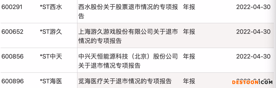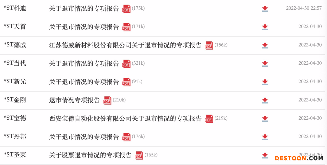 此外,还有不少公司在假期前收到交易所告知,拉响了退市警报,等待交易所的最后决定程序。仅4月30日,沪深两市就有13家公司披露了关于退市情况的专项报告。