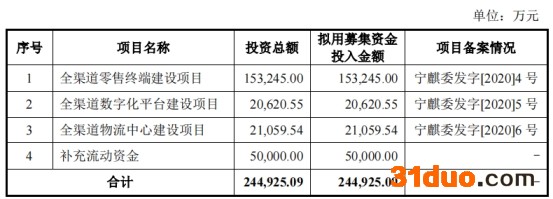 孩子王最终募集资金净额比原计划少18.93亿元。孩子王于2021年10月11日披露的招股书显示,公司拟募集资金24.49亿元,分别用于全渠道零售终端建设项目、全渠道数字化平台建设项目、全渠道物流中心建设项目、补充流动资金。