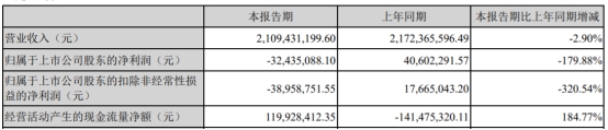 同日,孩子王披露的2022年第一季度报告显示,今年第一季度,公司实现营业收入21.09亿元,同比减少2.90%;归属于上市公司股东的净利润-3243.51万元,同比减少179.88%;归属于上市公司股东的扣除非经常性损益的净利润-3895.88万元,同比减少320.54%;经营活动产生的现金流量净额1.20亿元,同比增长184.77%。