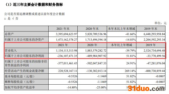 年报显示,报告期内,中环装备通过公开挂牌的方式转让全资子公司北京融合环保有限公司(以下简称“融合环保”)100%股权,剥离环境能效监控与大数据服务、大气污染减排等业务,2020年上述业务收入占比分别为34.22%、9.04%。报告期内,中环装备实现营业收入11.34亿元,同比下降39.79%,连续两年下滑,实现归属于上市公司股东的净利润(以下简称“净利润”)-2.36亿元,连续三年为负。其中,环保装备业务收入占比为65.81%,毛利率为7.53%,同比下降17.54%。