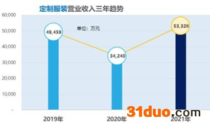 2021年,国内疫情防控进入常态化,以口罩、隔离衣为代表的防疫物资供应量稳定,价格保持平稳,公司逐步退出了防疫物资的生产和保供,防疫物资的营收同比减少95.12%,营收占比由2020年的40.86%下降到2.10%,导致公司主营业务收入略有下降。与此同时,公司服装C2M产业互联网平台收入5.33亿元,同比增长55.75%,营收占比达到89.94%,不但弥补了退出防疫物资业务造成的收入缺口,还带动了公司净利润稳健增长。