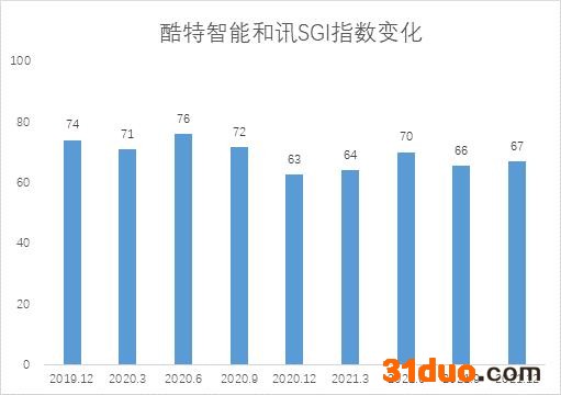 据和讯SGI最新评分,酷特智能2021年四季度录得67分,表现一般,与三季度基本持平,全年整体表现逊于上年。
