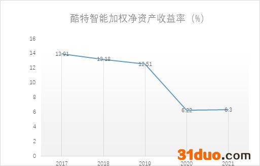 但从近五年ROE来看,酷特智能近五年ROE均值为10.42%,过去五年ROE最低为2020年的6.22%,最高为2017年的13.91%。2021年与2020年基本持平,处于历史低位,因此拖累SGI评分难有提升。