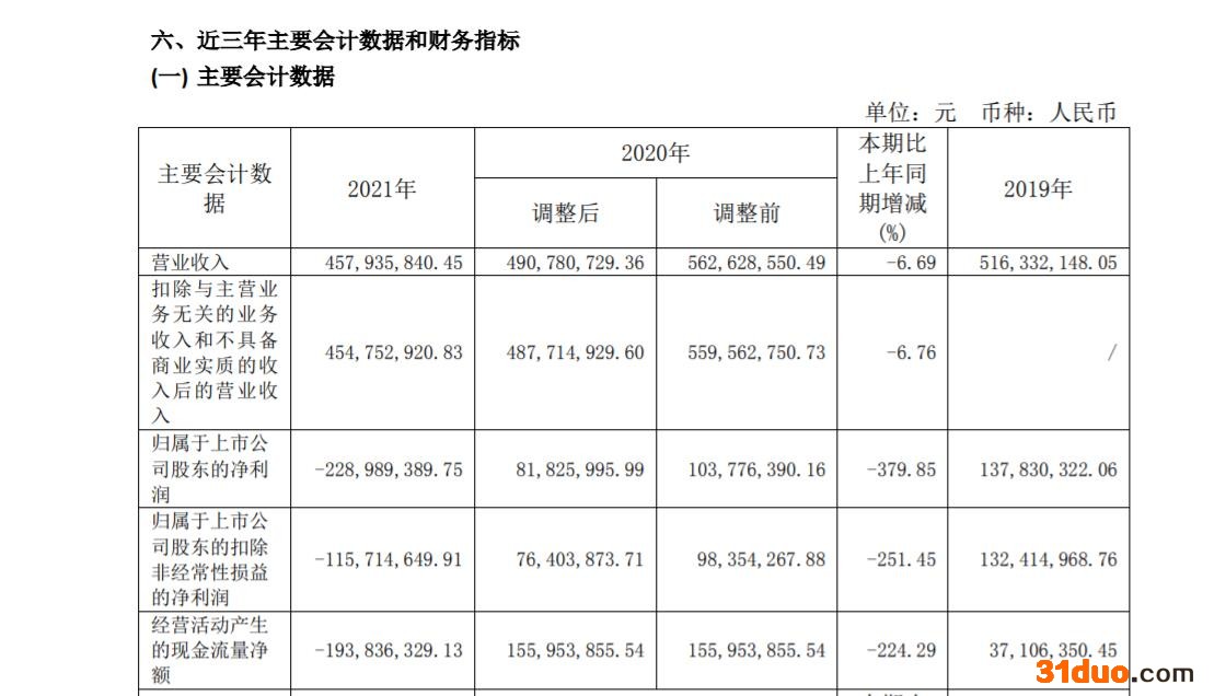 中新经纬5月6日电 紫晶存储日前发布2021年年度报告显示,全年实现营业收入4.58亿元,同比下降6.69%;归属于上市公司股东的净利润-2.29亿元,同比下降379.85%;基本每股收益-1.20元。经营活动产生的现金流量净额为-1.94亿元,同比下降224.29%。