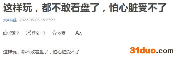 从今日该股股价走势图来看,用“大起大落”来说一点不为过。股友们也表示“这样玩,都不敢看盘了,怕心脏受不了”。
