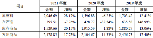 一般来说,公司销售的产品既有今年生产的产品也有去年剩下的库存商品,既有用今年采购的原料生产的也有用去年库存原材料生产的,因为去年原材料价格未上涨,所以对应的主营业务成本相对会低一些。但从公司的库存数据看,近三年分别为6676.00 万元、6045.90 万元和6450.71 万元,变动并不大。不仅如此,存货几项细分科目的绝对金额变动也不大,也就是说库存变动对主营业务成本的影响很小。