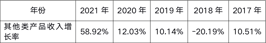 另外,公司其他类产品2017年-2020年收入都表现一般,即使增长也只有10%左右,而到2021年却突然大幅增长?在即将上市的关键时刻有这种现象,不免有调节收入的嫌疑。
