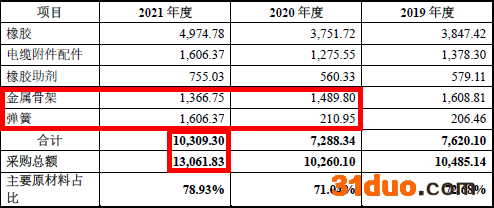 原材料价格上涨如图所示(招股书中未披露金属骨架和弹簧价格,但从采购金额看二者合计增加了1272.37万元)。