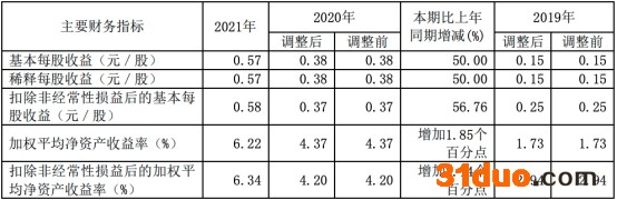 2021年,华创阳安基本每股收益0.57元/股,同比增长50.00%;加权平均净资产收益率6.22%,较上年同期增加1.85个百分点。