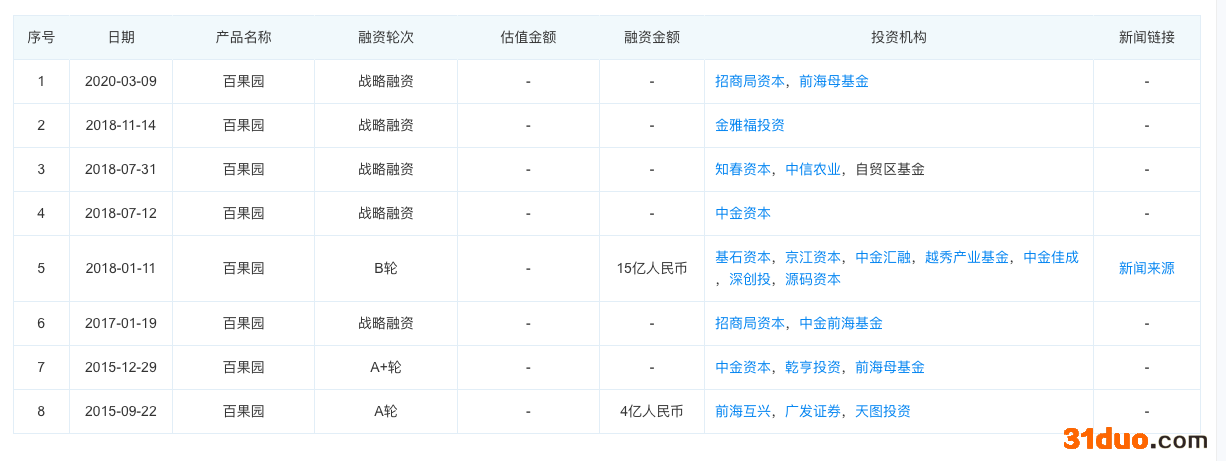 天眼查显示,2015年,百果园曾完成4亿元A轮融资,由天图投资领投,广发信德、前海母基金等跟投,此轮投资后,百果园估值达50亿元,是当时中国水果连锁零售行业最大的一笔投资。