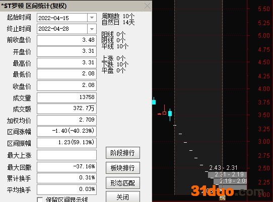 二级市场上,*ST罗顿该股进入2022年走出了单边下跌的趋势。4月28日收盘,*ST罗顿股价一字跌停,这已是该股连续走出的第10个跌停。