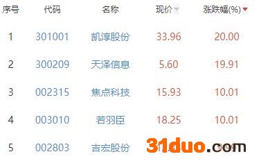 其中,凯淳股份、天泽信息、焦点科技、若羽臣、吉宏股份位列板块涨幅前五位,涨幅分别为20.00%、19.91%、10.01%、10.01%、9.99%。