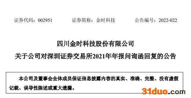 5月6日,四川金时科技(002951)股份有限公司回复深交所有关2021年年报的问询函,并就此前中标大客户具体信息、相关未中标事项对公司业绩持续经营能力的影响、公司在烟标项目招投标中是否存在行贿等违规行为等问题进行答复。