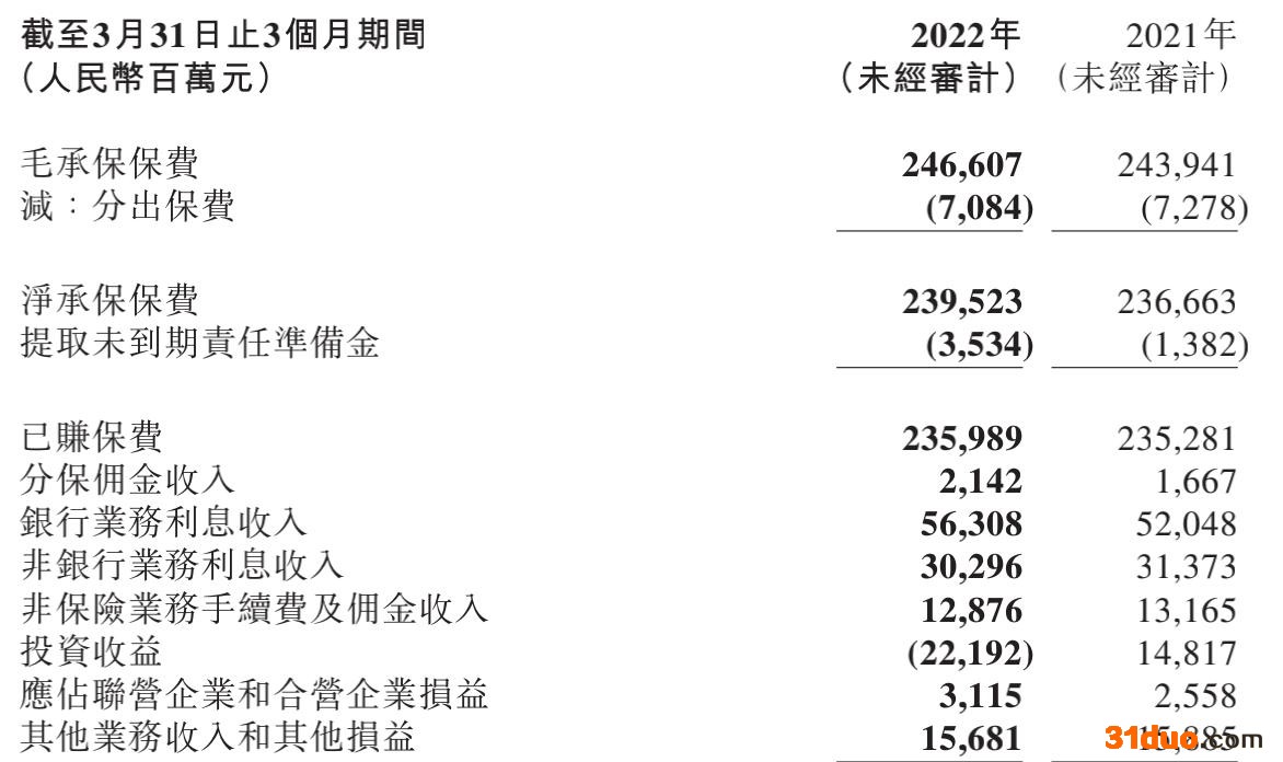 来源:中国平安2022年一季报