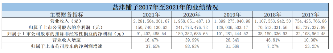 纵观2021年全年,盐津铺子归属于上市公司股东的净利润约1.51亿元,同比下滑37.65%;归属于上市公司股东的扣除非经常性损益的净利润约0.91亿元,同比下滑51.73%。