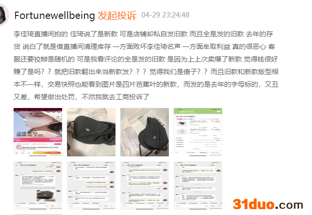 有消费者投诉称“防晒口罩是在直播间拍的当时说了是新款可是店铺却私自发旧款而且全是发的旧去年的存货 ,说白了就是借直播间清理库存 。”