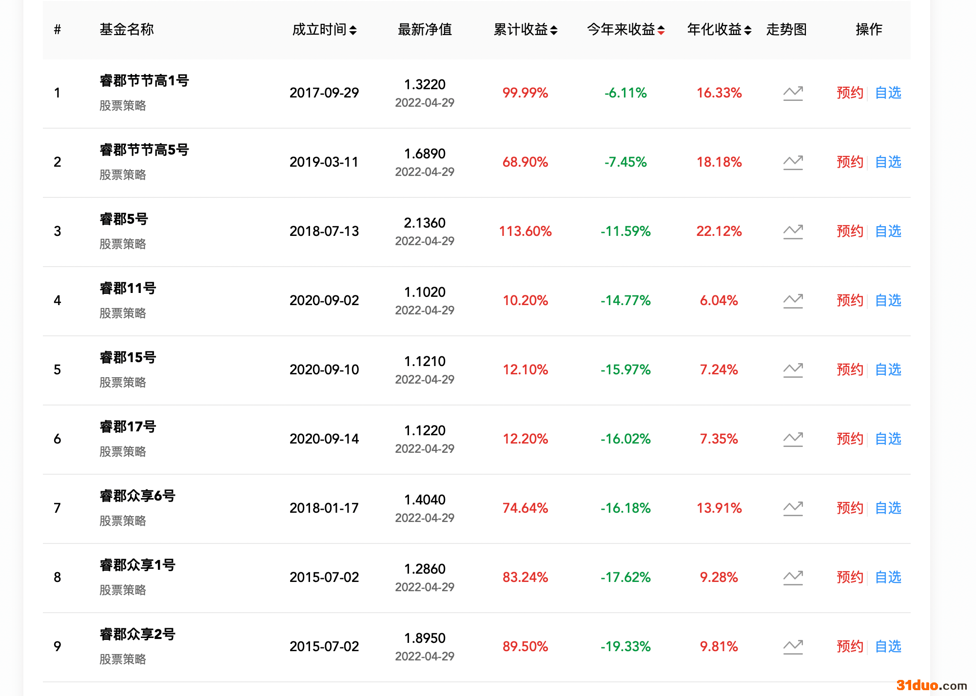 私募排排网数据显示,目前睿郡资产管理资产规模已超过100亿元,旗下基金142只。目前已披露净值数据的9只产品今年收益率均为负,其中7只产品今年回撤超过10%,“睿郡众享2号”已跌近20%。