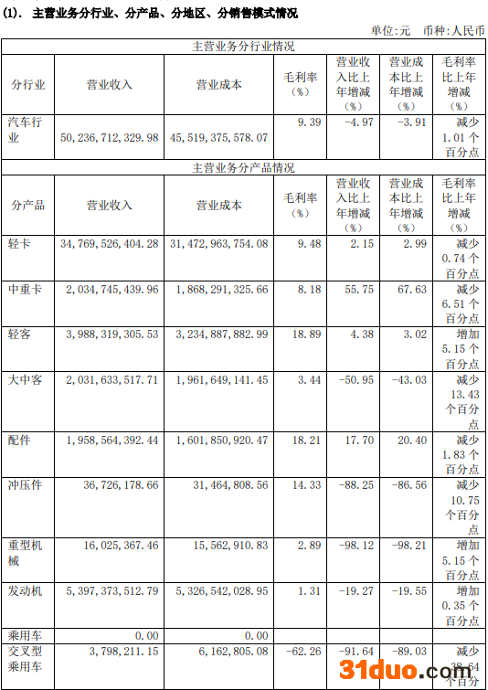 福田汽车称,受2021年下半年宏观经济增速放缓、国六排放实施、运费低迷等因素叠加影响,重卡行业整体销量大幅下滑,导致公司重卡业务销量出现下滑。同时,2021年受轻卡蓝牌新规、运费低迷等因素叠加影响,轻卡客户持续消费观望,轻卡行业总体销量下滑,导致公司轻卡业务销量出现下滑。
