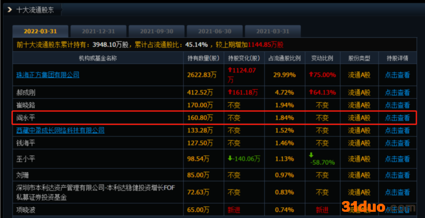 建艺集团一季报显示,阎永平位列前十大流通股东第四位。