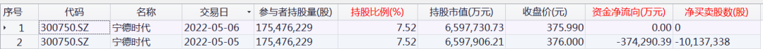 北向资金持股宁德时代明细数据