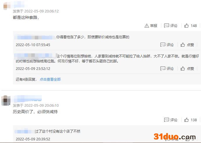 对此,股吧有网友表示,“历史高价了,必须快减持”“都是这种套路”。