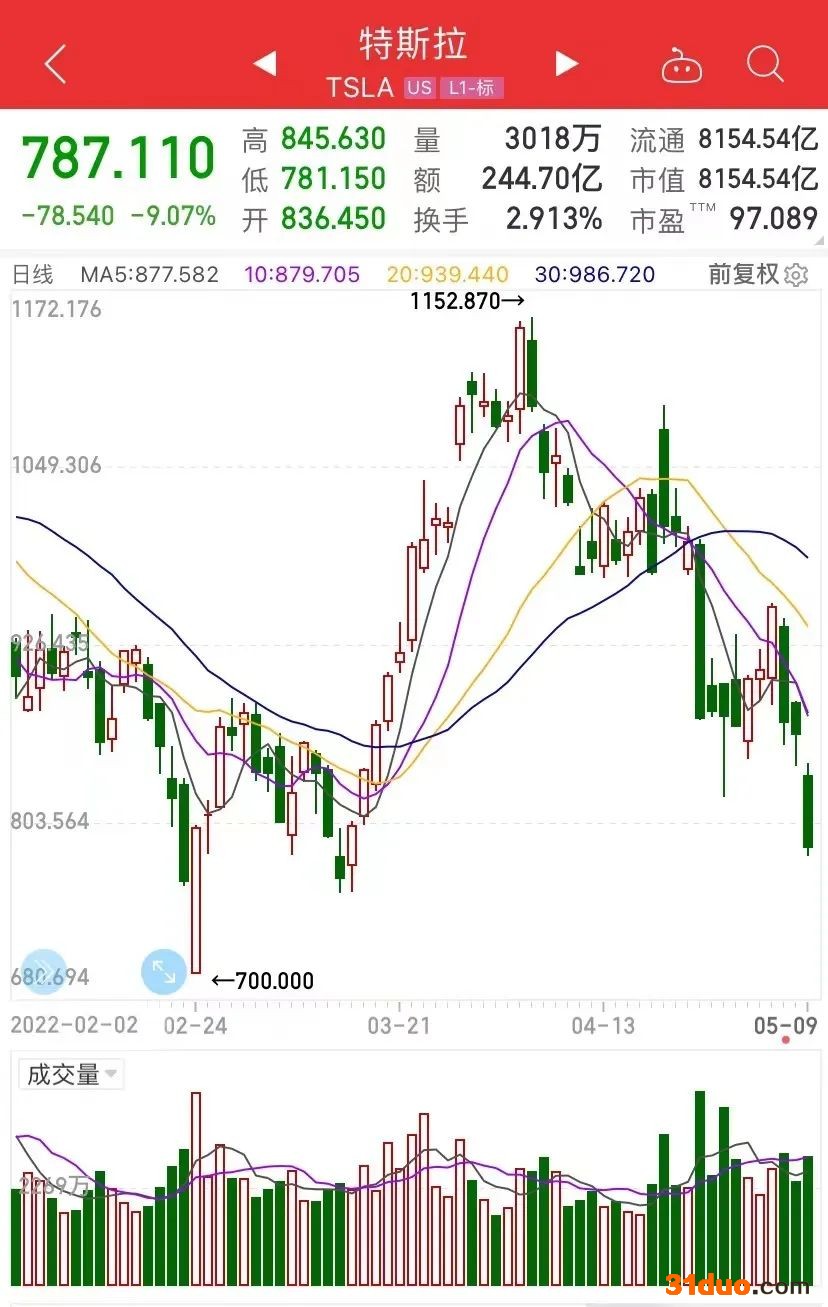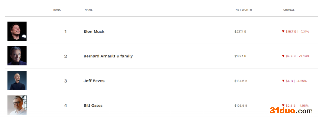 在福布斯全球实时富豪榜上,马斯克无疑是昨晚最大的“失意者”。特斯拉股价昨夜下跌超过9%,跌破800美元,这位全球首富身家也跟着缩水187亿美元(约合人民币1200亿元)。