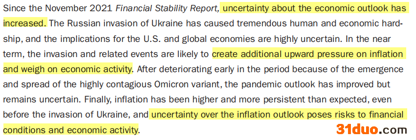 美联储最新报告:通胀的不确定性增加了金融和经济活动风险