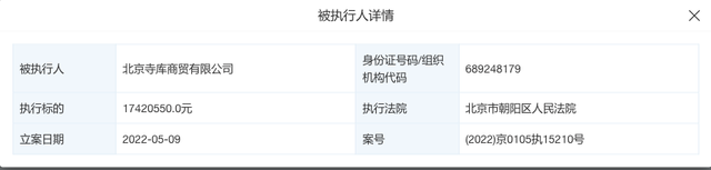 蓝鲸TMT频道5月10日讯,天眼查App显示,北京寺库商贸有限公司今日新增1则被执行人信息,执行标的1742.055万元,执行法院为北京市朝阳区人民法院。
