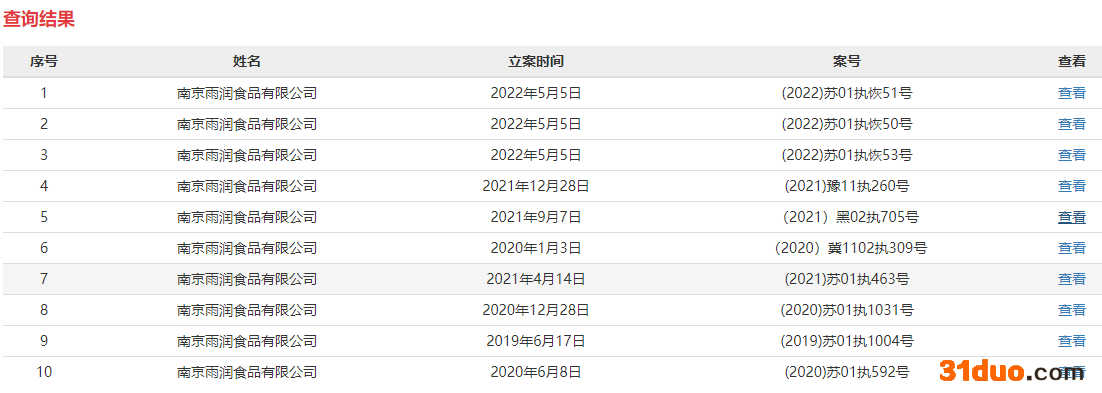 中国网财经5月10日讯 中国执行信息公开网显示,南京雨润食品有限公司5月5日新增三起恢复执行信息,执行法院均为南京市中级人民法院,案号分别为(2022)苏01执恢50号、(2022)苏01执恢51号和(2022)苏01执恢53号,执行标的分别为89500000、265041441和40886864,执行标的合计达395428305元。中国执行信息公开网同时显示,自2018年至今,南京雨润食品有限公司被执行或恢复被执行达19起。