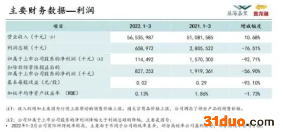 “境内子公司企业所得税的法定税率较高,一季度总体呈现盈利状态;境外新加坡子公司主要从事农产品及散装食用产品国际贸易业务, 享受较低的企业所得税优惠税率,一季度呈现亏损,所以一季度实际所得税率较高。当境外盈利情况比较好后,实际所得税率会有所下降。 ”金龙鱼称。