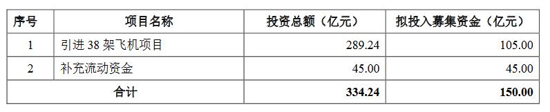 公告显示,东航本次非公开发行股票的募集资金,其中有105亿将用于引进38架飞机的项目,该项目总投资额为289.24亿元。另外45亿元,则用于补充流动资金。中国东航集团拟以现金方式认购本次非公开发行股票金额不低于人民币50亿元。